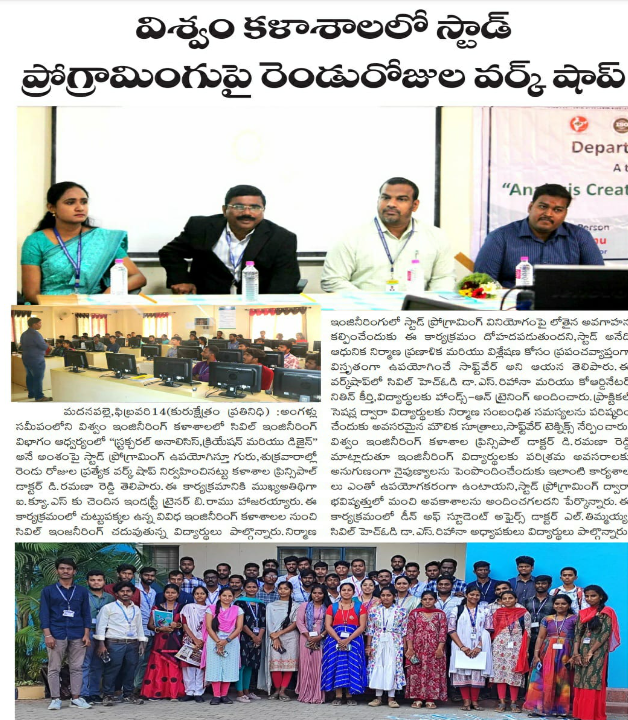 The Department of Civil Engineering at Viswam Engineering College is a dynamic hub of academic excellence, innovation, and societal impact. Established with a commitment to shaping future-ready engineers, the department blends rigorous technical education with ethical values, leadership development, and a strong focus on sustainability.